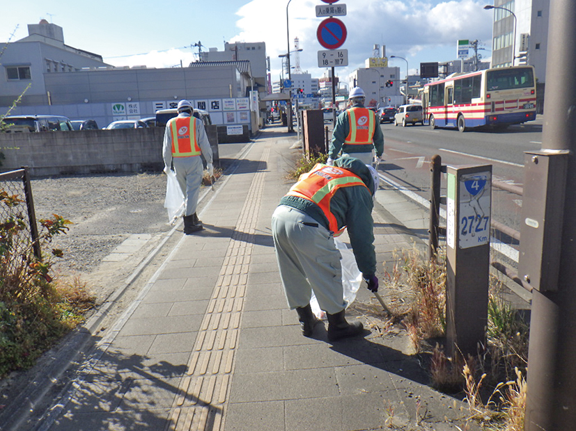 11月5日、社会貢献の一環として、本社周辺と福島・郡山・二本松・川俣各支店周辺の美化活動を実施致しました。 当日は26名の当社社員が参加し、地域住民の協力に感謝を込めて、路肩に捨てられた紙くず、吸い殻などのゴミを丁寧に拾い、地域の美化に取り組みました。