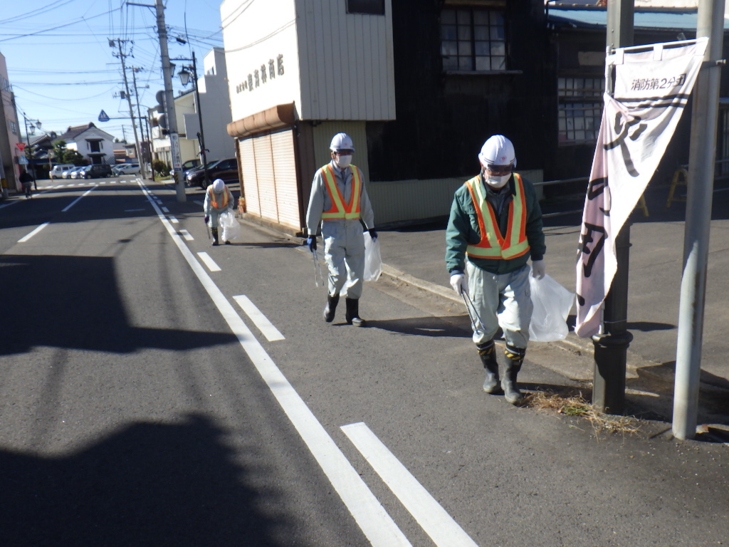 当社社員が参加し、地域住⺠の協力に感謝を込めて、路肩に捨てられた紙くず、吸い殻やビニールなど のゴミを丁寧に拾い集めたほか、歩道の清掃など熱心に取り組みました。