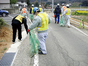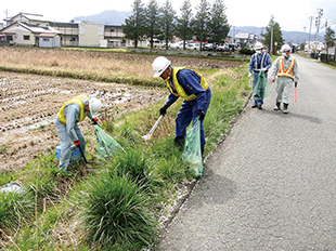 4月6日に福島トヨタ自動車㈱配車設備センター周辺、4月13日に大玉村民屋内運動場周辺、4月14日にいすゞ自動車東北㈱本宮営業所周辺をそれぞれ実施し、当日は当社社員をはじめ、協力施工会社の方々も参加し、地域のご協力に感謝し、空き缶やペットボトル、ビニール類のゴミを分別しながら回収するなど、熱心に取り組みました。