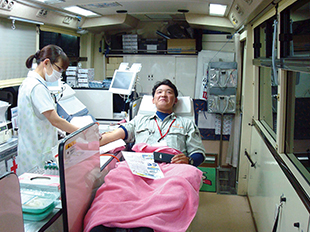 昨年10月15日、本社駐車場において同年2回目となる献血活動が実施されました。 今回も仕事の合間を縫って当社社員をはじめ、関係協力会社のご協力をいただき約60名から貴重な善意が寄せられました。