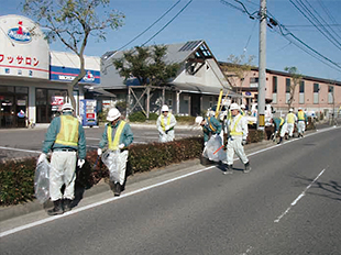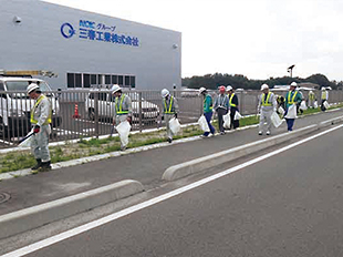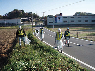 7月18日は、建替工事を担当した本宮市の東北病院周辺道路を、9月11日は三春工業本社工場の完成にあたり、工業団地内の区画道路を、工事期間中の地域の協力に感謝を込め清掃作業を行いました。活動には当社社員及び協力会社らが参加しました。