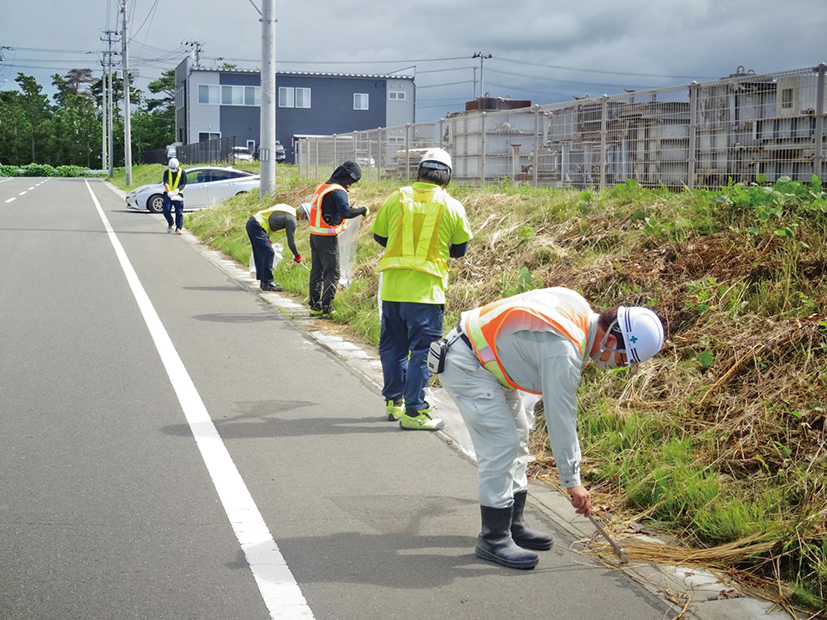 7月6日、社会貢献の一環として、郡山市上伊豆島地内の西部第1工業団地で美化活動を実施し、当社社員や協力会社など13名が参加しました。
