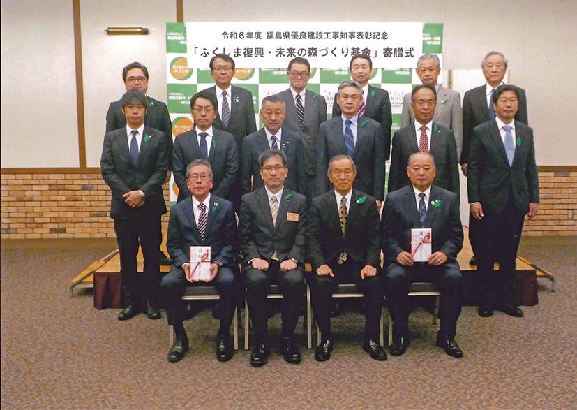 2024年10月31日、福島市のウェディングエルティにおいて、「ふくしま復興・未来の森づくり基金」の寄贈式が行われました。令和6年度福島県優良建設工事知事表覚を記念し、当社を含む24社より寄付金を寄贈しました。「ふくしま復興・未来の森づくり基金」は、県内の森づくり活動などの事業に役立てられます。