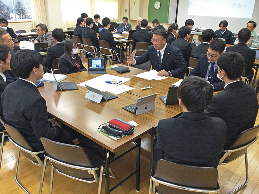 座談会に先がけた座学では、齋藤淳県建設業協会事務局長をはじめ、各担当者が「人材育成の取り組み」や「建設業への就職に向けて」についで講和を行いました。