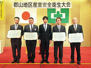 郡山労働基準協会主催の、郡山地区産業安全衛生大会が11月25日、郡山市ホテルハマツにて開催されました。当日は橋谷田邦男郡山労働基準協会会長などの挨拶につづき、安全衛生活動に功績のあった優良事業所の表彰式が行われました。当社の受賞者は次の通りです。 ◇産業安全優良管理者…磯貝忠夫、齋藤祐樹 ◇産業安全優良従業員…桑原義成、田中得