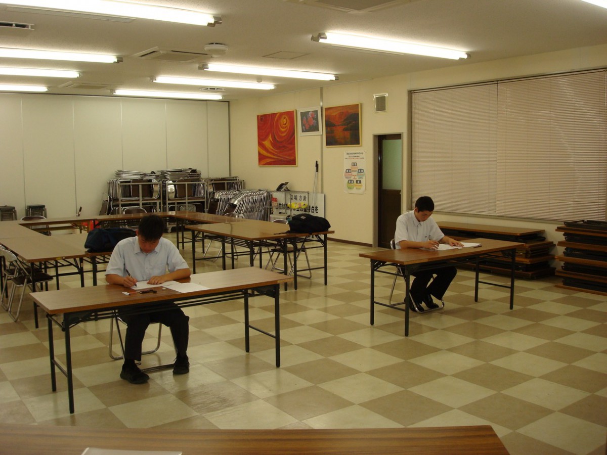 本年度は、高卒予定者2名が受験しました。午前は筆記試験、午後は面接試験 (個人)を行い、受験者は緊張しながらも真剣に取り組んでいました。