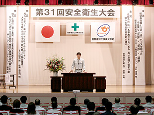 第31回安全衛生大会が9月26日、しらさわカルチャーセンターで行われました。当日は社員、協力会社から約250名の方々に参加頂きました。今年は新型コロナウイルス感染予防の観点から例年より規模を縮小しての開催となりました。開会にあたり。当社菅野社長より「建設現場は常に危険と隣り合わせ。ヒヤリやハットを見逃さないことが無事故無災害につながる。これからもチームカンケンとして、技術・品質の高いものを作るために、今まで以上に安全意識を高く持ってほしい」と挨拶がありました。安全講話では、航空自衛隊出身のミス・ユニバース秋田代表でタレントの久杉香菜様より、「今、必要な安全・育成・健康」をテーマに講演いただきました。席上、社員や協力会社社員から安全衛生功労者の表彰、安全標語コンクール入賞者の発表も行われました。