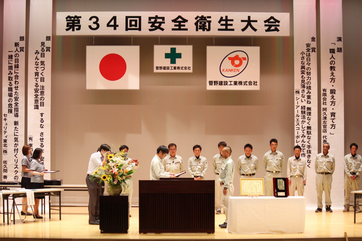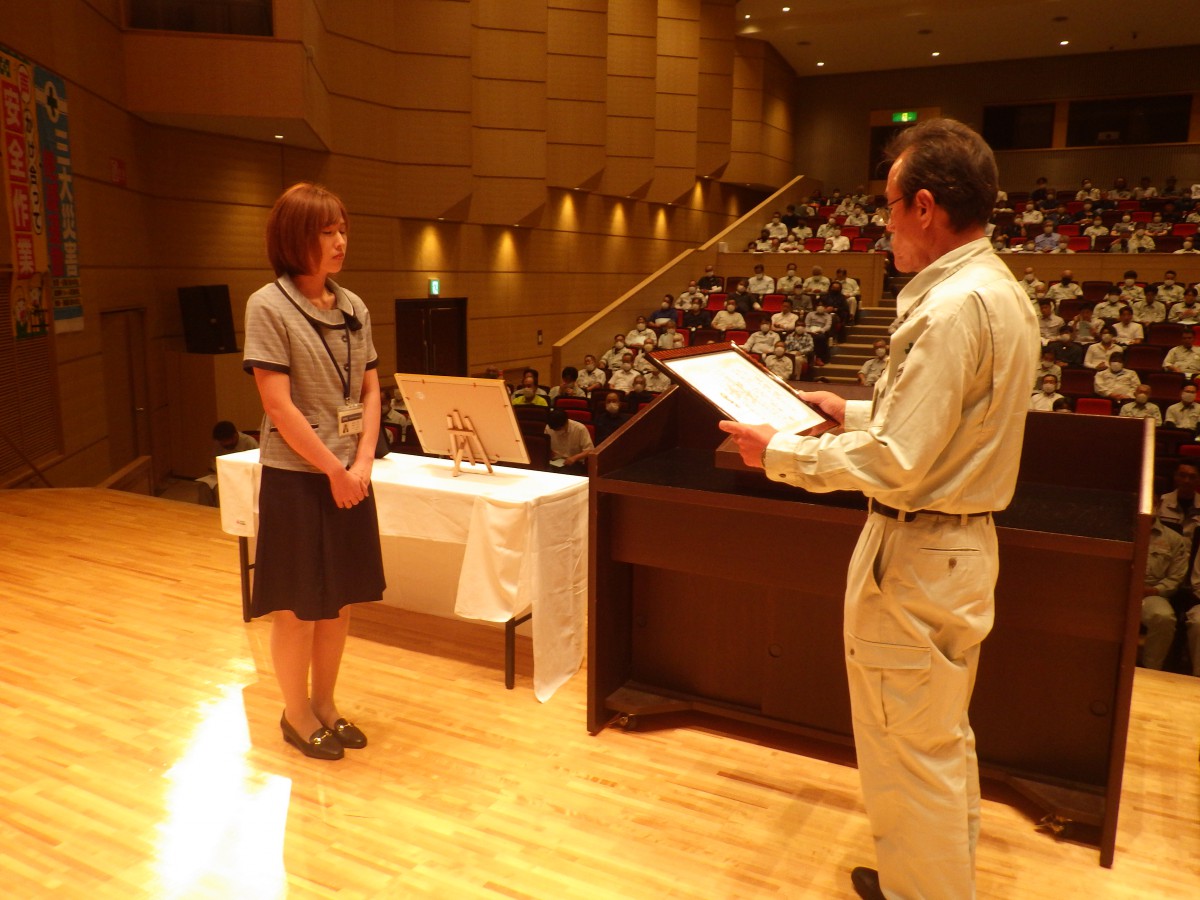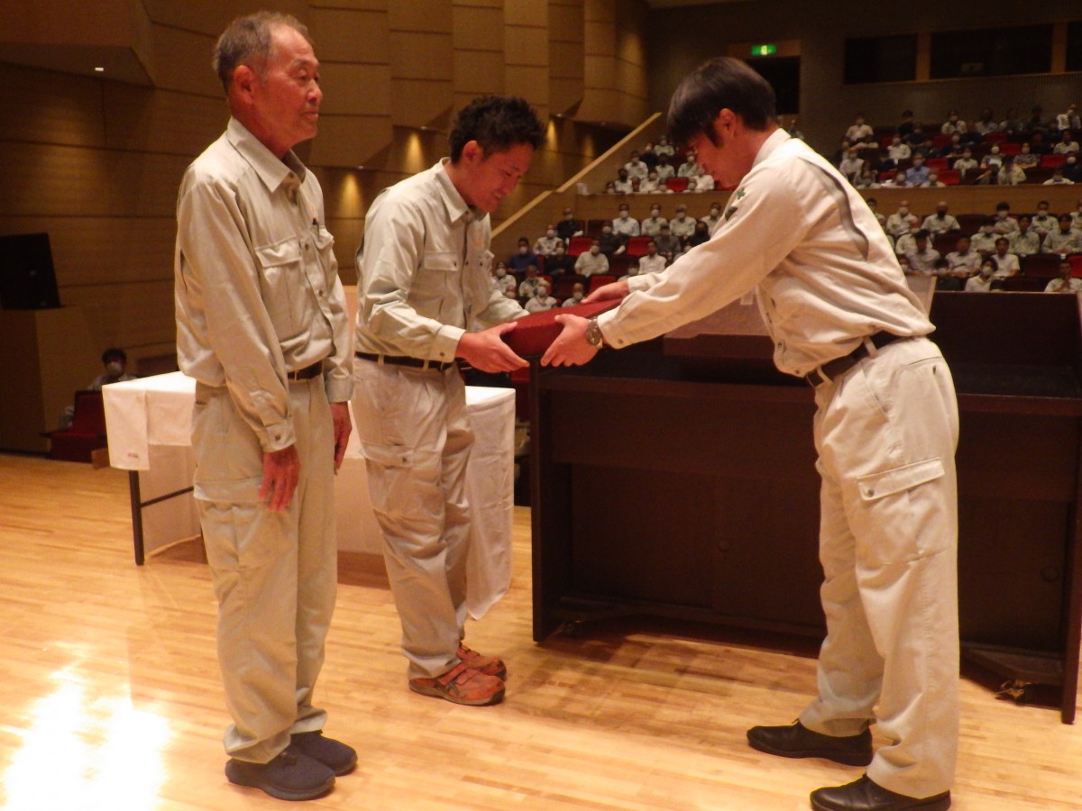 また、社員や協⼒会社社員から安全衛⽣功労者の表彰、安全標語コンクール⼊賞者の表彰も⾏われました。