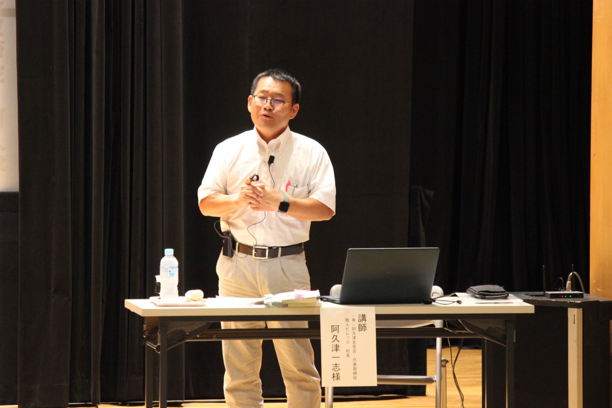 無災害につなげよう」と挨拶がありました。安全講話では、有限会社 阿久津左官店の代表取締役 阿久津⼀志様より、「職⼈の教え⽅・鍛え⽅・育て⽅」をテーマに講演頂きました。席上、令和5年度福島県優良建設⼯事(舗装部⾨)表彰を受けた、「道路橋りょう整備(再復)⼯事(舗装)⼤綱⽊1-1⼯区 国道349号現場代理⼈/佐久間篤⼟⽊本部技⼠正、監理技術者/移川孝市⼟⽊本部専⾨技術員」が特別功労者として表彰されました。