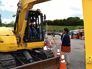 当日は、子ども向けに小型ドローンの操縦やバックホウの運転席搭乗、高所作業車への試乗体験のブースを設置し、普段味わえない生の建設機械を体験してもらいました。直に触れる建設機械の迫力に、子供たちは目を輝かせていました。また、プロ野球ルートインBCリーグ福島ホープス対東北楽天ゴールデンイーグルス(2軍)の試合が行われ、オリジナルリストバンドとファールボールをプレゼントし、大変盛り上がりました。