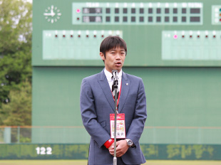 5月19日、当社が施工しました、しらさわグリーンパーク野球場にて、菅野建設工業マッチデーが開催されました。この催しはBCリーグ、福島HOPESのホームタウンである福島県の未来を担う子ども達の心身ともに健全な未来に貢献したいという想いで行われ、開会に先立ち、当社菅野社長より「スポーツ支援で子どもの健全な育成と、地域貢献は当社の悲願。選手には野球から生まれる絆・魅力・夢を存分に伝えてほしい」と挨拶がありました。
