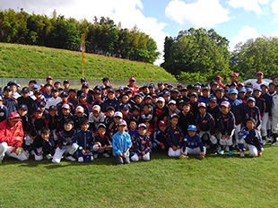 試合終了後には、福島ホープスの岩村明憲監督をはじめ、プロ選手が直接指導する野球教室も行われ、参加した約100名の子ども達は熱心に指導を受けていました。今回参加された子ども達だけでなく、もっと多くの子ども達に、夢と希望と元気を与えられるよう、これからも様々な形で地域貢献に努めてまいります。