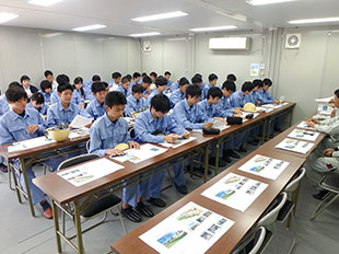 また、当社施行の本宮第3保育所にて、9月11日に郡山北工業高校建築科から40名、25日には会津工業高校建築インテリア科より40名がそれぞれ現場見学に参加し、1日の大まかな流れや工事計画について学んだ後、完成間近の保育所を見学して頂きました。
