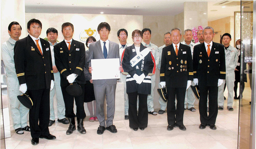 また、11月10日に本宮市本宮出身の根本陽奈さんが一日本宮市消防団長として任命され、当社を訪問し、火災予防を呼びかけました。これは、福島県消防協会本宮支部主催で、11月9日~15日までの秋の全国火災予防運動の一環で行われました。