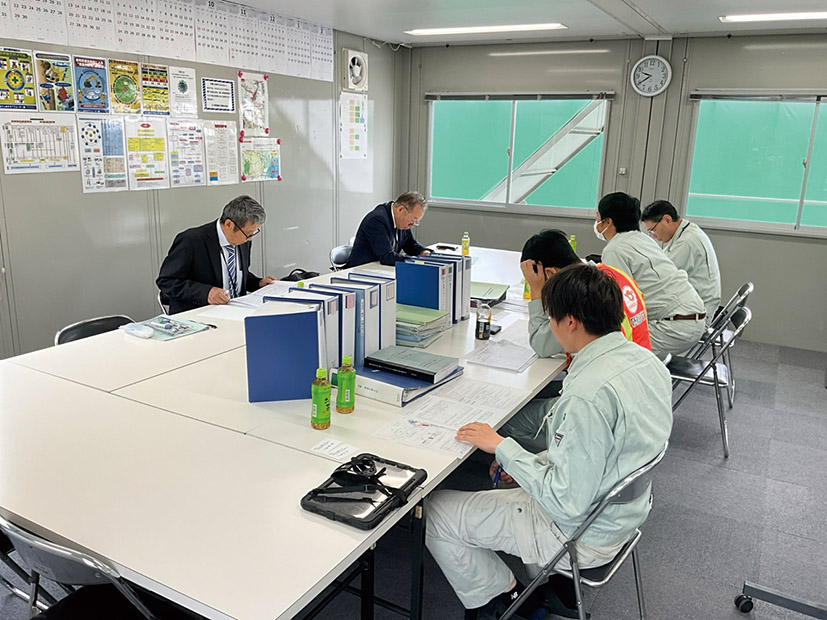 土木作業所での審査の様子