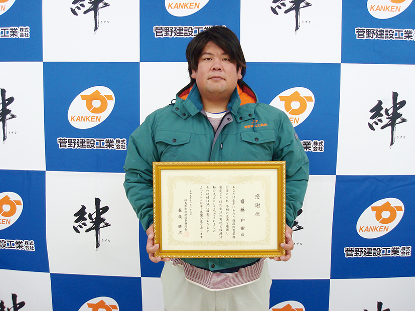 11月18日福島県県北建設事務所にて、今年度除雪感謝状贈呈式が行われました。冬の厳しい業務環境のなかで、永年にわたり現場の最前線で除雪業務に献身的に取り組んでいる社員に対し、これまでの除雪業務への苦労と社会的貢献に敬意を表するため、長嶺勝広…